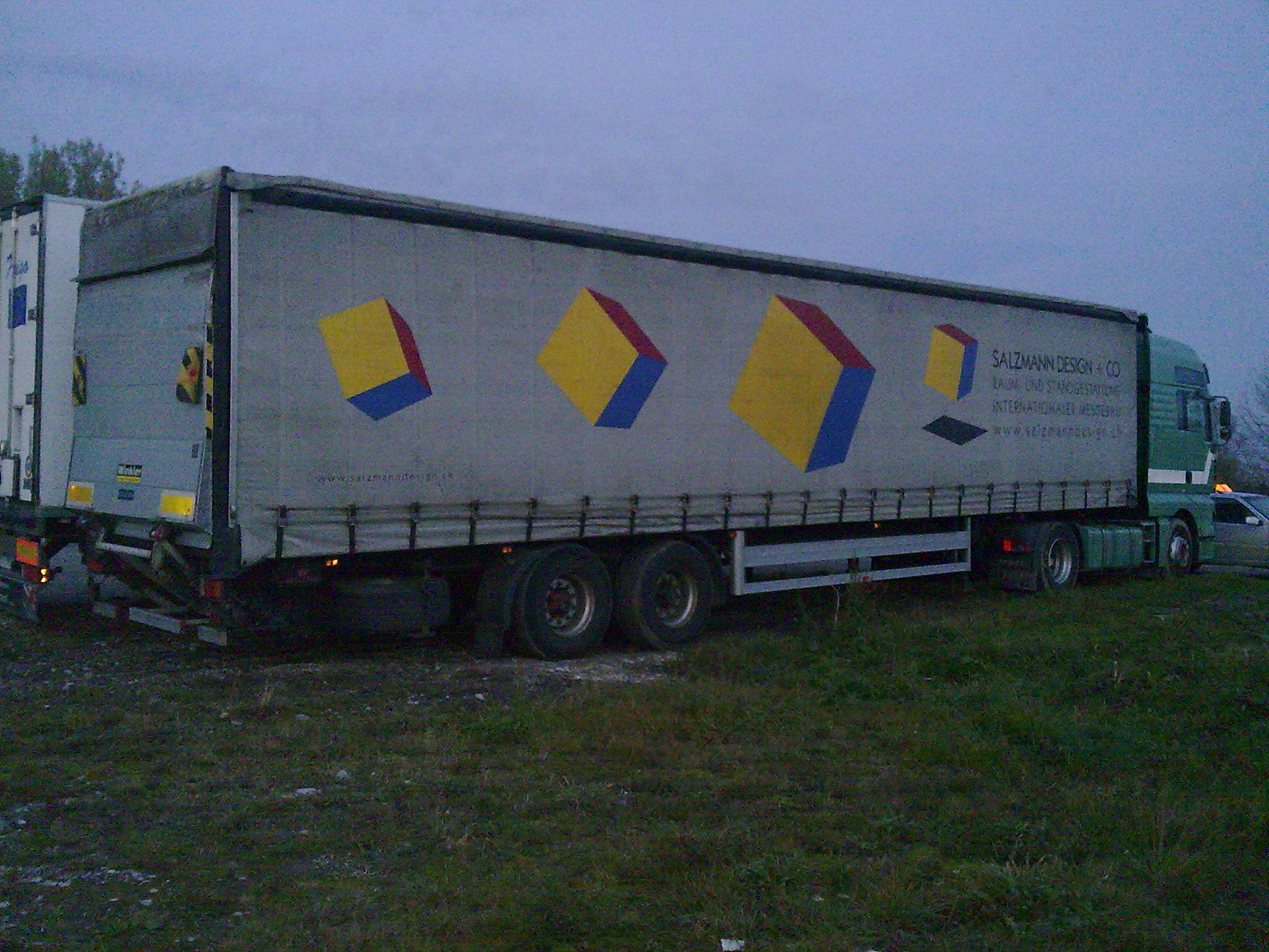 Blachenauflieger 3-Achs mit unterfaltbarer Hebebühne Nutzlast: 25 to Palettenplatz : 34 Europaletten Innenmasse : 13.65 m x 2.47 m x 2.70 m |